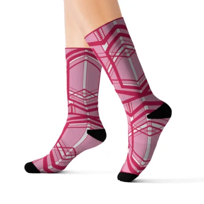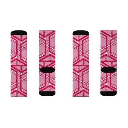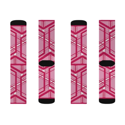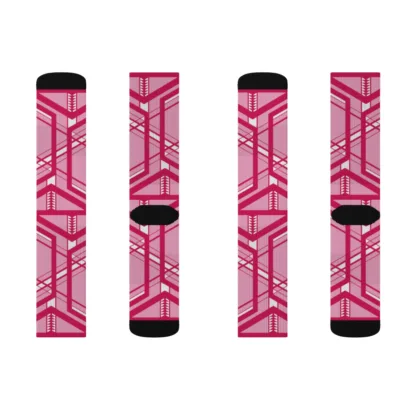These high-quality custom socksĀ in Bradley Pinks sublimated print provide optimum comfort and style wherever one might go – a subtle accent to complement an office look or an eye-catching statement for an extravagant outfit.
